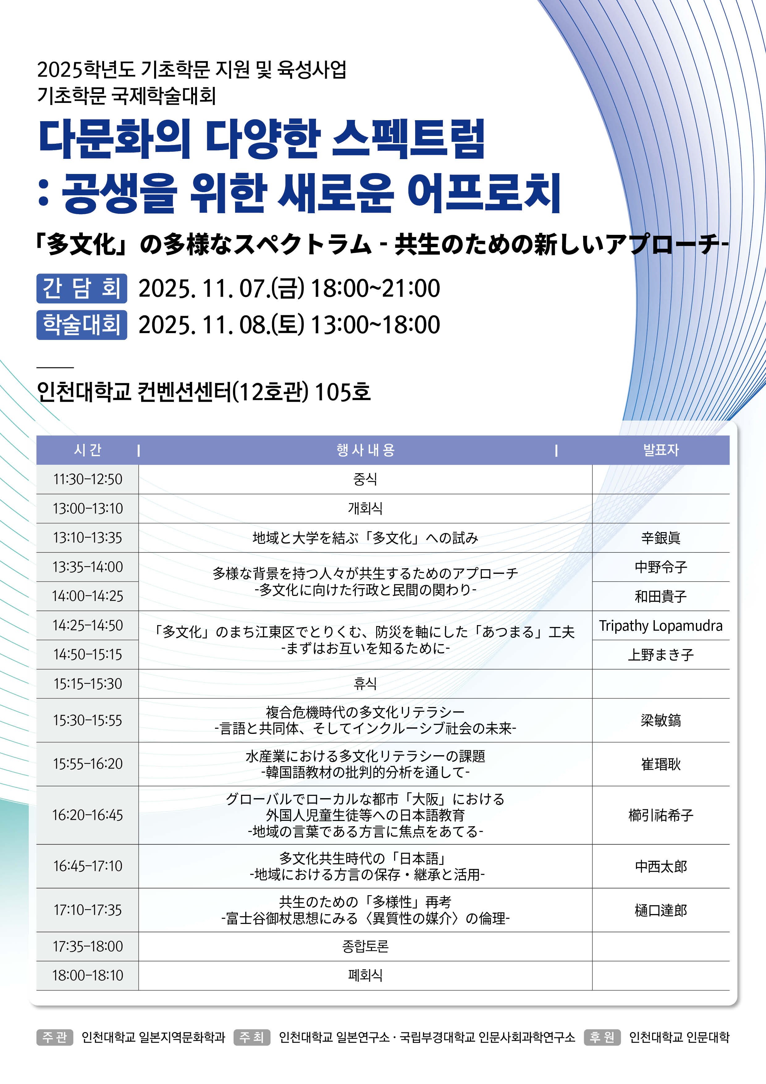 2025학년도 기초학문 국제학술대회 개최 안내 「다문화의 다양한 스펙트럼:공생을 위한 새로운 어프로치」