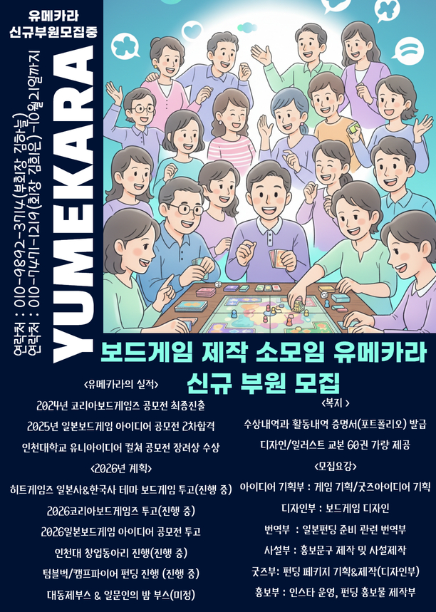 2026년도 보드게임 제작 소모임 "유메카라" 신입 부원 모집 안내문!