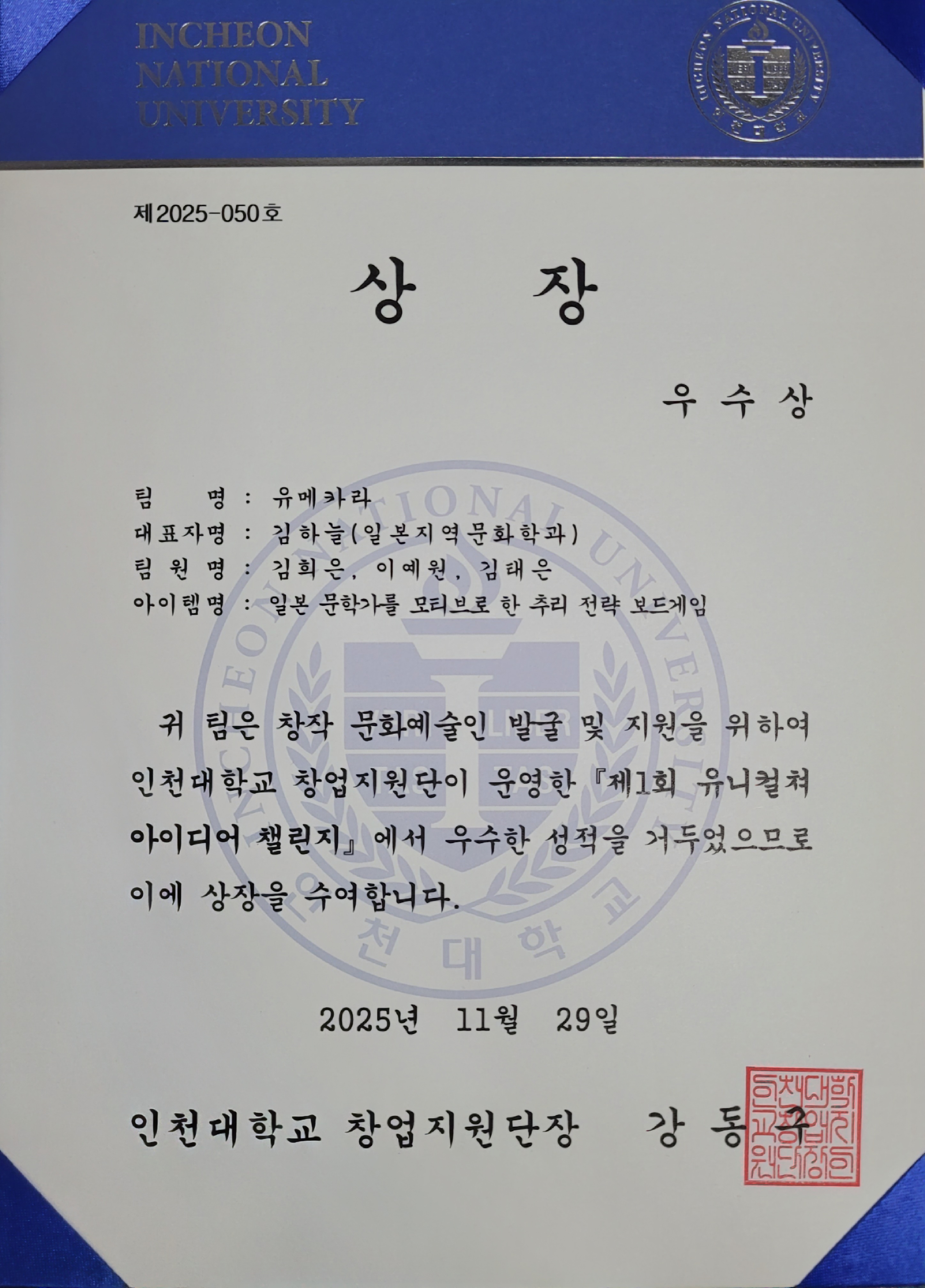 2025-2학기 <소모임 유메카라 유니컬처 아이디어 챌린지 수상>