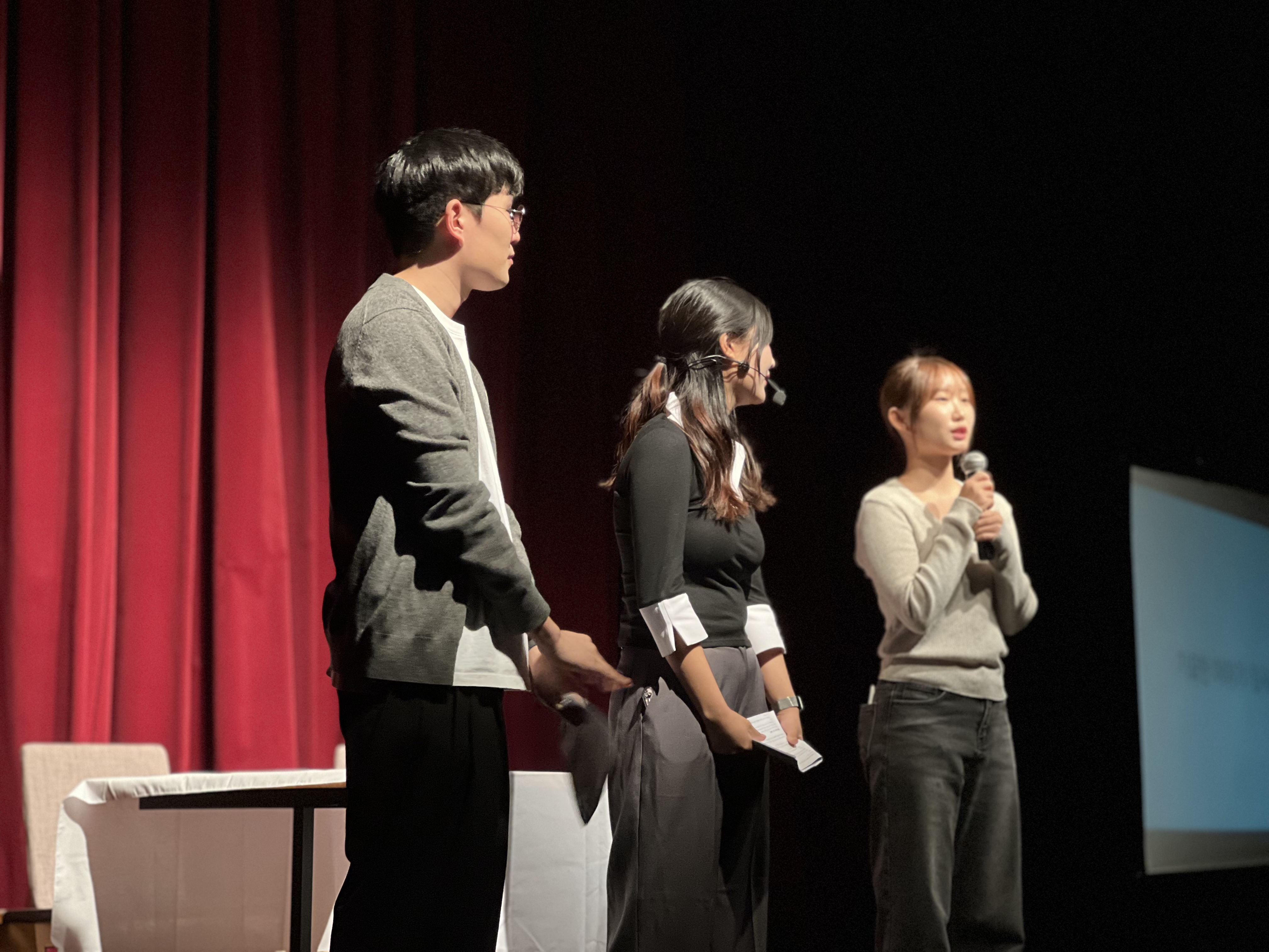 15시 30분부터는 소극장 내에서 진행하였습니다. 교수님과의 인터뷰, 소모임장과의 대화 등을 통해 학우들이 평소 궁금증이 많았던 것들을 사전에 종합하고 이때 질문을 드리고 바로 답변을 얻으며 학우들을 넘어 교수님들과도 가까워지고 내년에는 더욱 다양한 활동에 참여를 할 수 있도록 모두의 열정이 뜨거워지는 시간을 가졌습니다.