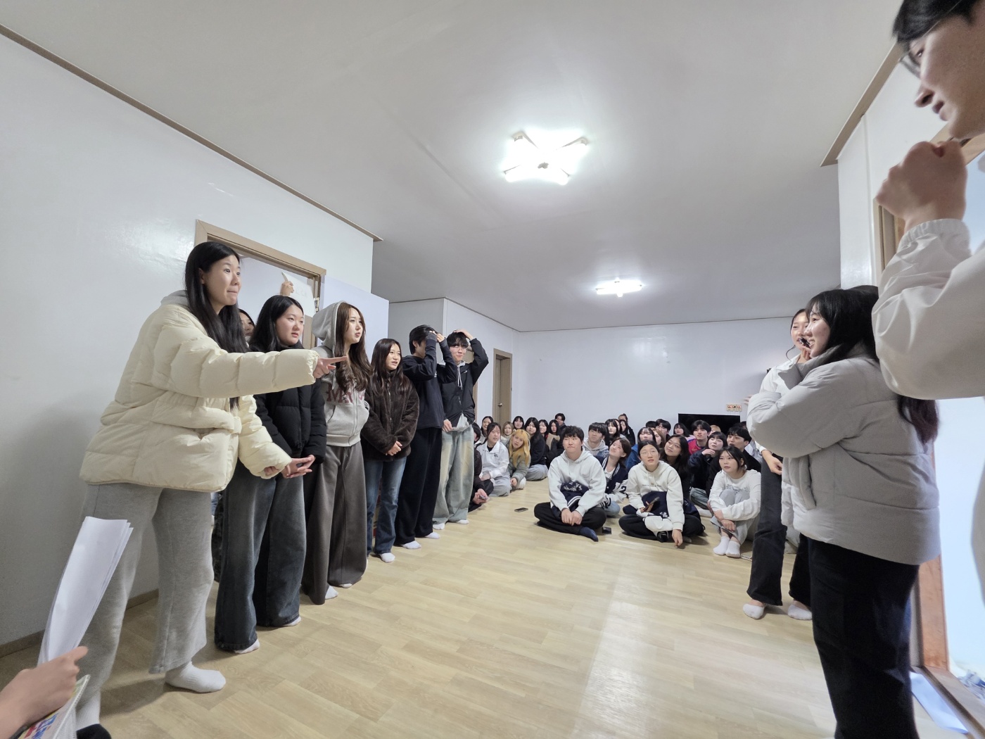 첫 번째 게임은 쪽지 뽑기 이어달리기였습니다. 신발을 벗고 열정적으로 참여하는 학우분들도 있었고, 모두가 적극적으로 임해주셔서 시작부터 활기찬 분위기가 만들어졌습니다!